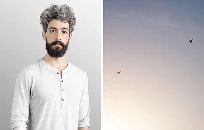 SILVER is an ongoing portrait project. As a balance between black and white, silver symbolizes equilibrium and stability. In photography middle gray is the universal measurement standard in photographic cameras. The SILVER series consist of pairings of people with gray hair with landscapes, spatial stills and cityscapes in order to create a new visual narrative exploring of the in-betweenness. Each portrait session takes about 2 hours during which the subjects are photographed in silence front of a white background. Later the portrait is carefully paired with an image based on it's RGB values of gray.